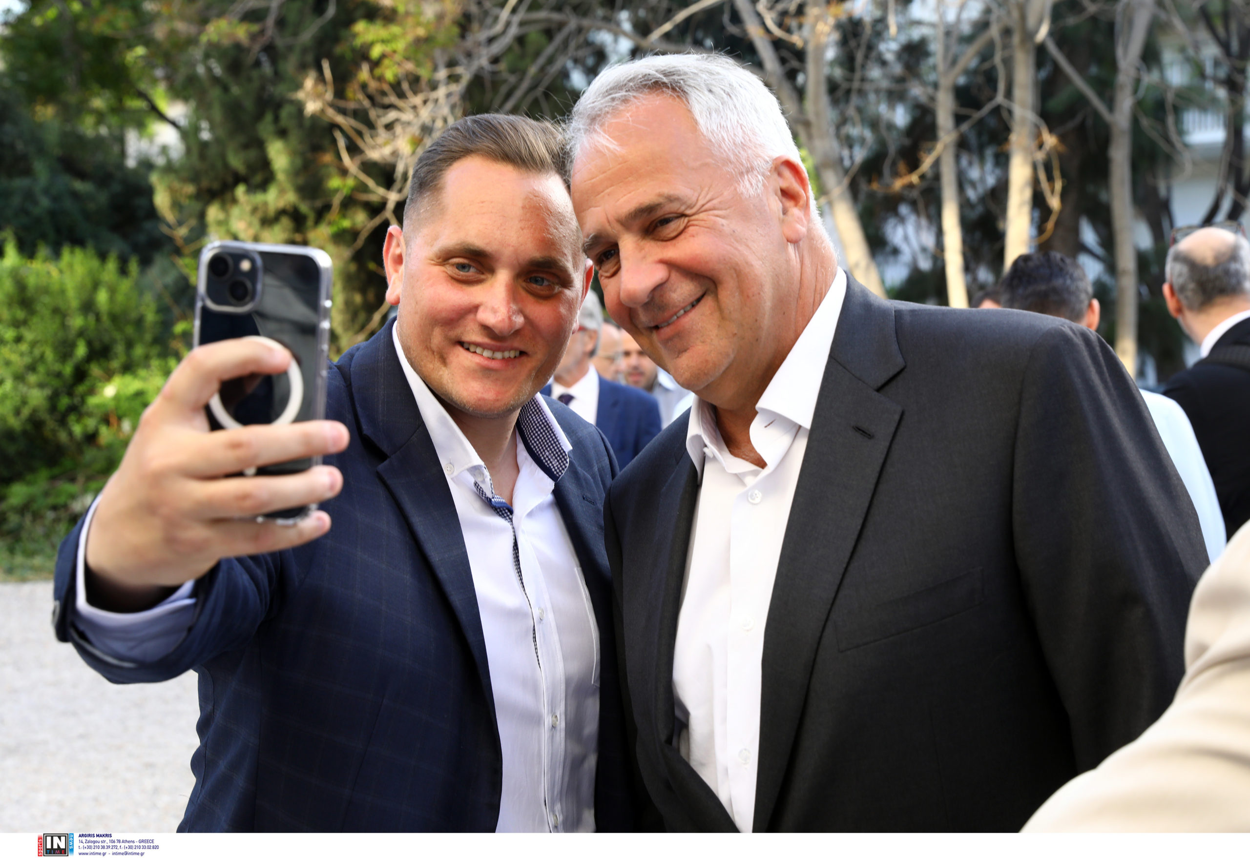 Ο Μάκης Βορίδης ποζάρει για selfie.