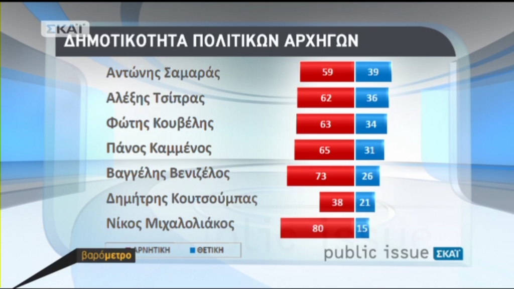Η δημοτικότητα των πολιτικών αρχηγών διαμορφώθηκε ως εξής: