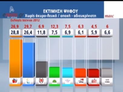 Να σημειωθεί πως τις εκλογές του Ιουνίου το κόμμα του κ. Τσίπρα είχε λάβει ποσοστό 26,9% ενώ η Νέα Δημοκρατία 29,7%.