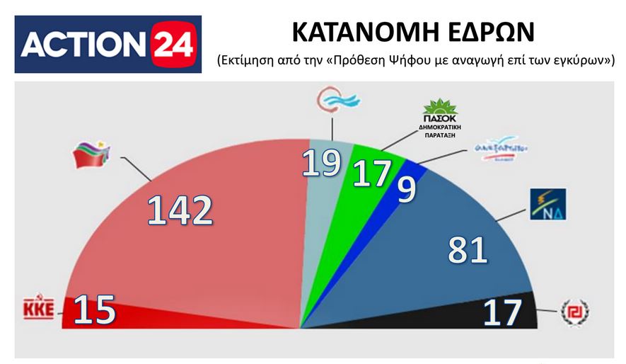 Μικρή μείωση της διαφοράς κατά 0,5% ανάμεσα στον ΣΥΡΙΖΑ και τη Νέα Δημοκρατία καταγράφει η δημοσκόπηση της Pulse για το Action24.