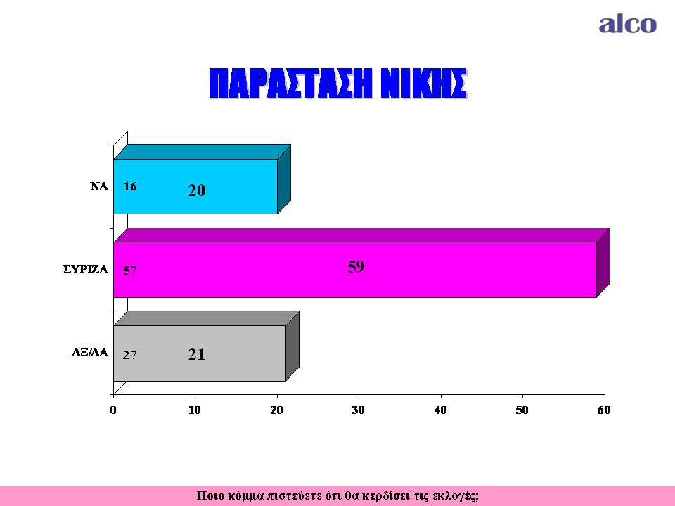 Στην παράσταση νίκης ο ΣΥΡΙΖΑ προηγείται με 59% έναντι της ΝΔ που συγκεντρώνει 20%.