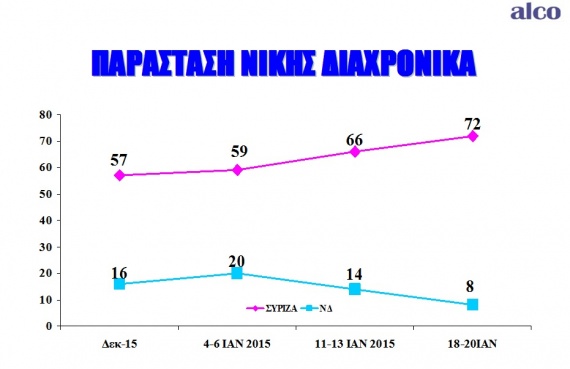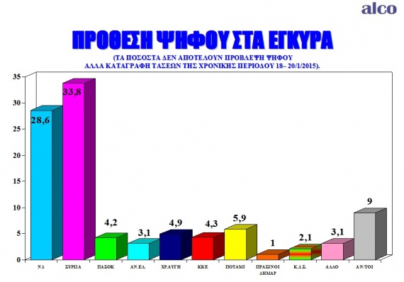 Προβάδισμα 4,9% στον ΣΥΡΙΖΑ έναντι της Ν.Δ., δίνει δημοσκόπηση της ALCO, που δημοσιεύεται την Πέμπτη στο «Ποντίκι».