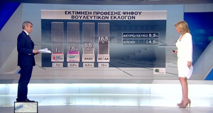 Προβάδισμα 16,5% της Νέας Δημοκρατίας έναντι του ΣΥΡΙΖΑ καταγράφεται στη νέα δημοσκόπηση του Πανεπιστημίου Μακεδονίας για λογαριασμό του ΣΚΑΪ.