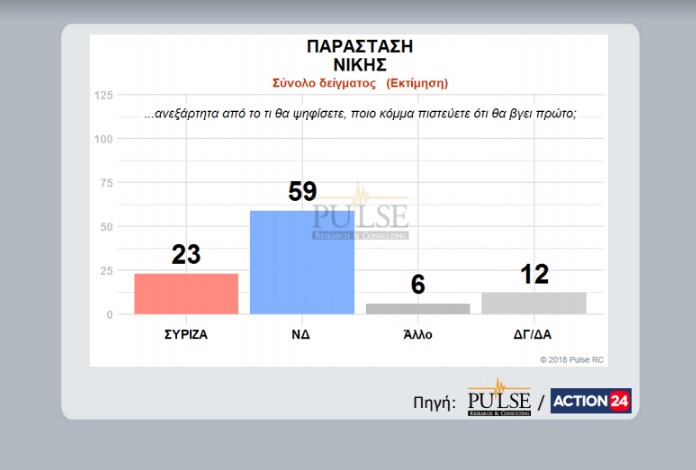 Στην παράσταση νίκης η ΝΔ προηγείται με 59% έναντι 23% του ΣΥΡΙΖΑ.