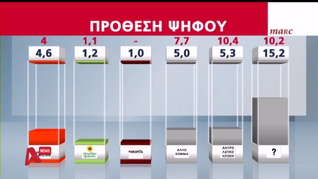 Οριακό προβάδισμα 0,2%  της ΝΔ έναντι του ΣΥΡΙΖΑ καταγράφει η δημοσκόπηση της Marc για τον ALPHA.