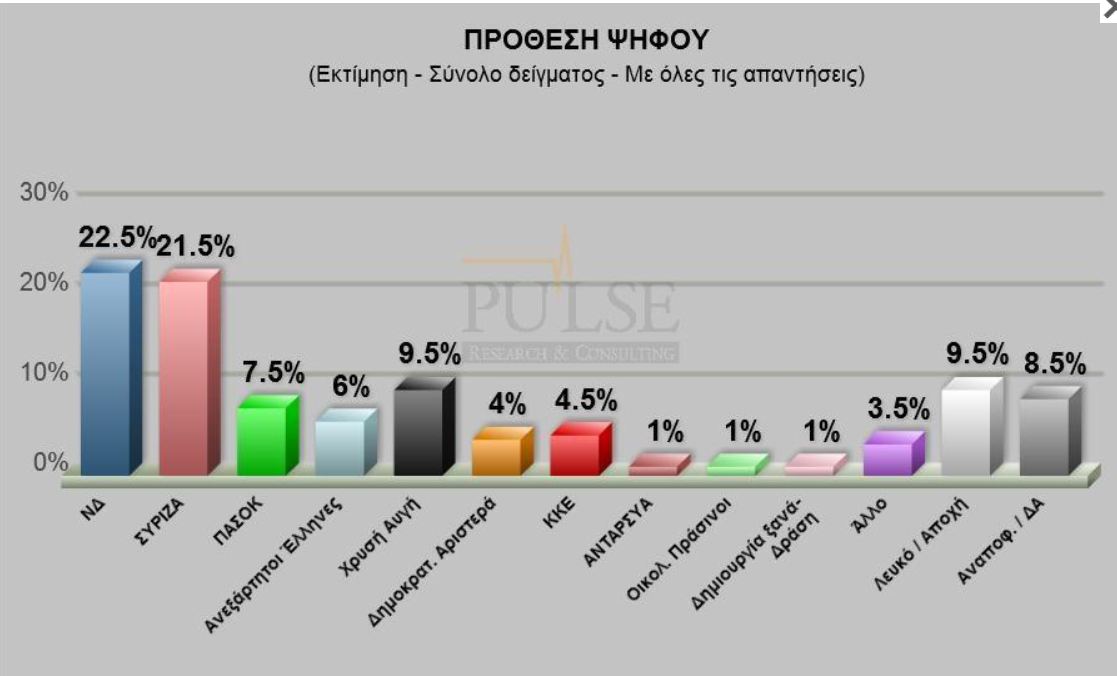 Η νέα δημοσκόπηση δίνει την Χρυσή Αυγή 3ο κόμμα και τη Νέα Δημοκρατία να προηγείται οριακά του ΣΥΡΙΖΑ