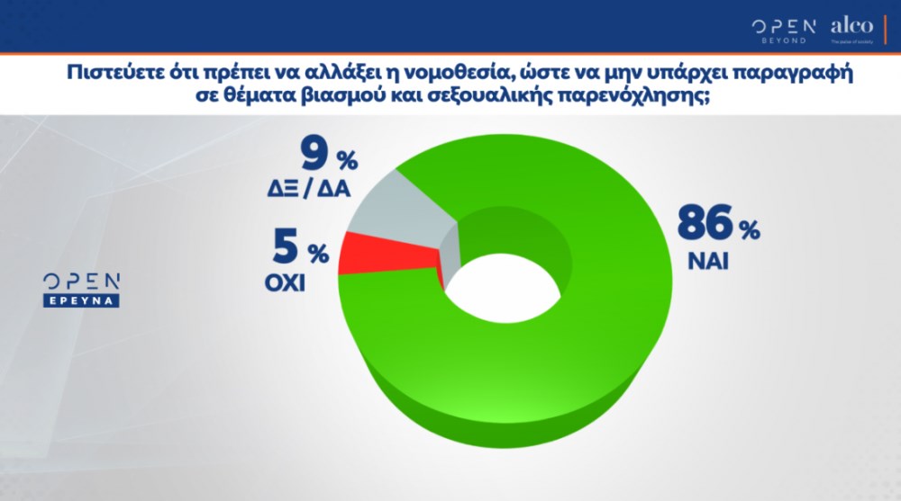 Στο θέμα των ημερών που αφορά τις καταγγελίες για σεξουαλική παρενόχληση και κακοποίηση σε πολλούς χώρους της κοινωνίας, η συντριπτική πλειονότητα των πολιτών ζητάει την αλλαγή της νομοθεσίας, ώστε να μην παραγράφεται το αδίκημα του βιασμού και της σεξουαλικής παρενόχλησης.