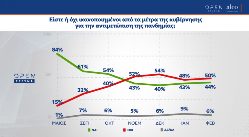 Σχετικά με το κυβερνητικό σχέδιο για τους εμβολιασμούς κατά του κορονοϊού, το ποσοστό ικανοποίησης αυξήθηκε τον Φεβρουάριο.