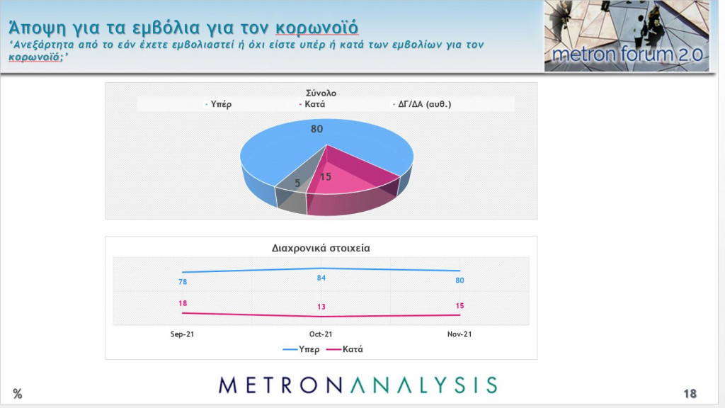Οκτώ στους 10 πολίτες δηλώνουν υπέρ των εμβολίων και ένα 15% κατά.
