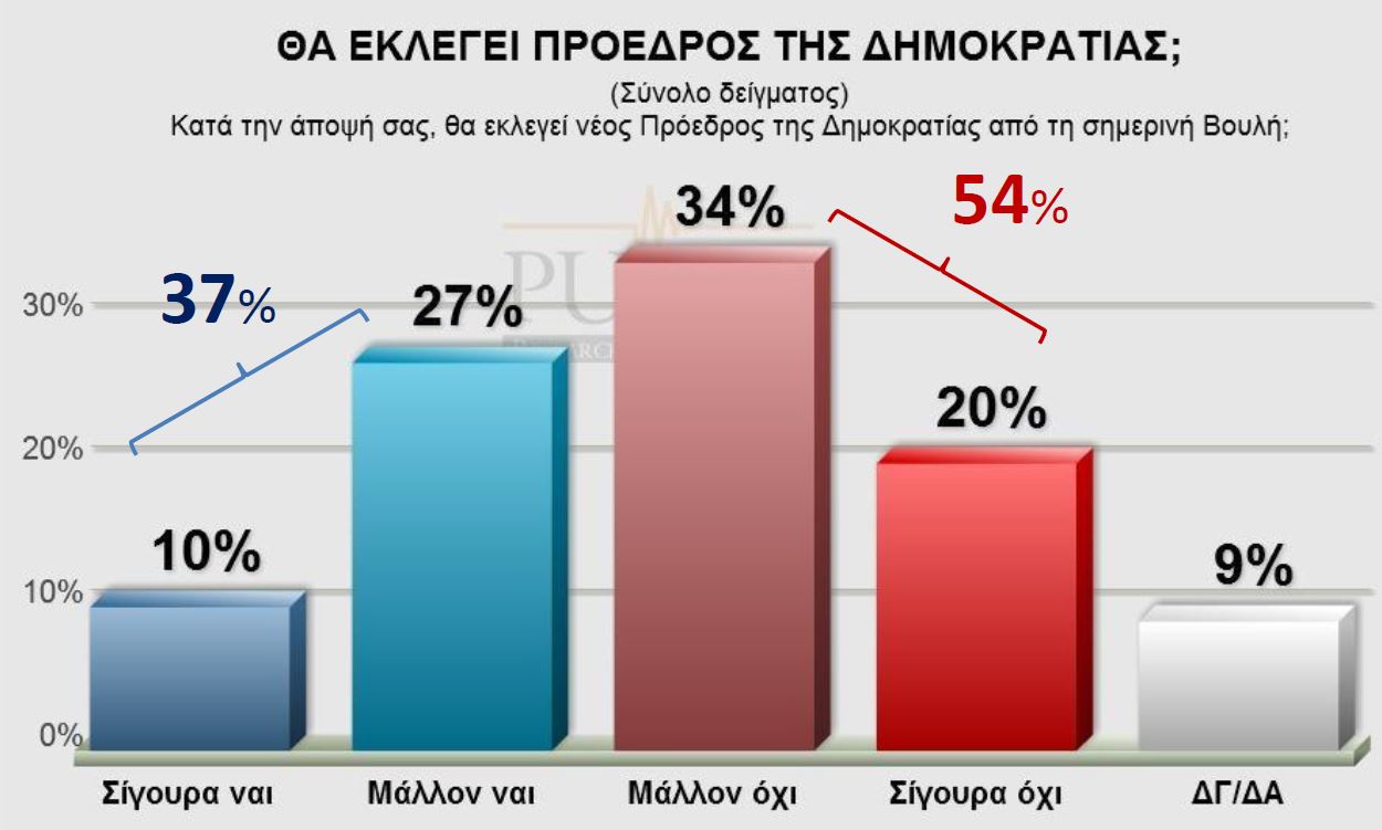 Το 54% θεωρεί ότι δεν θα εκλεγεί Πρόεδρος της Δημοκρατίας από την παρούσα βουλή , ενώ το 37% πιστεύει ότι θα εκλεγεί.
