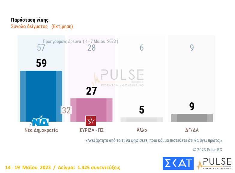 Στην παράσταση νίκης η ΝΔ λαμβάνει το 59% ενώ ο ΣΥΡΙΖΑ το 27%.