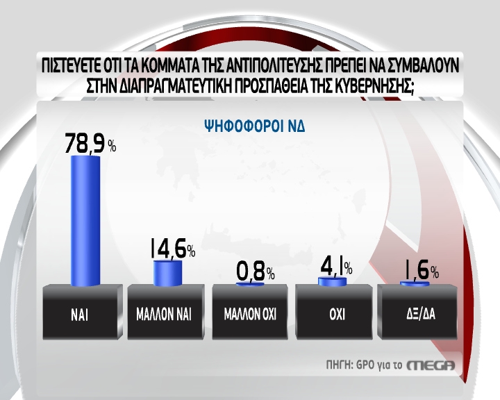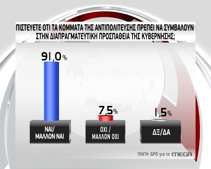 Το 91% των ερωτηθέντων πιστεύει ότι τα κόμματα της αντιπολίτευσης πρέπει να συμβάλουν στην διαπραγματευτική προσπάθεια της κυβέρνησης.