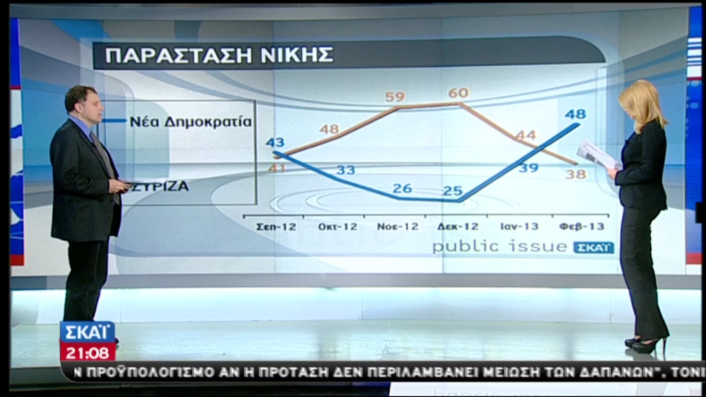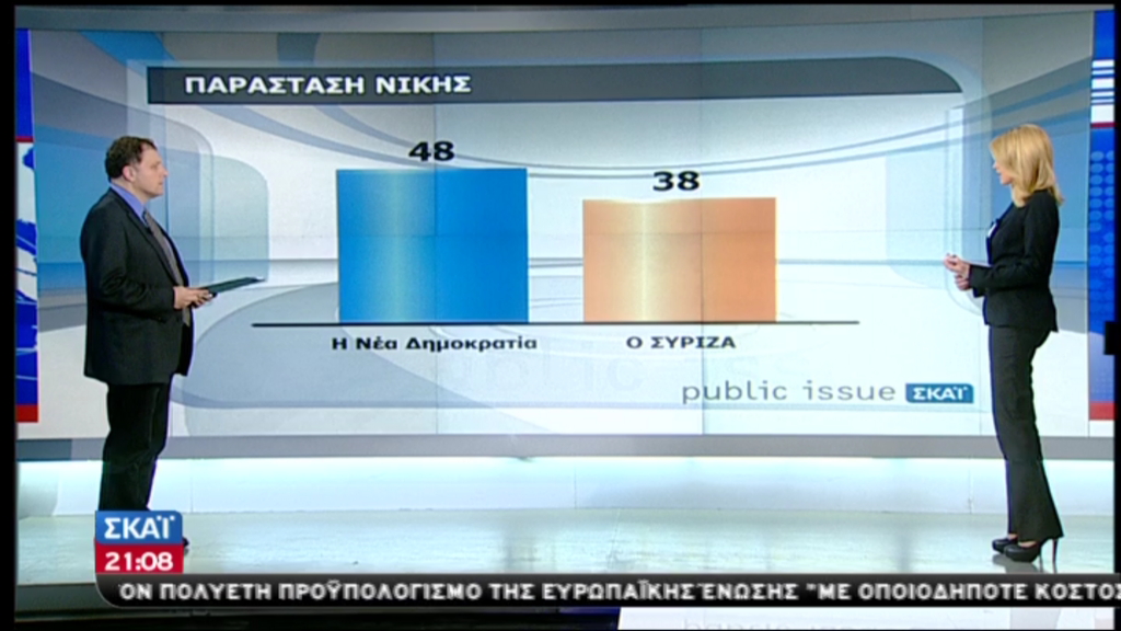 Στην παράσταση νίκης, προηγείται η ΝΔ με 48%, και ακολουθεί ο ΣΥΡΙΖΑ, με 38% .