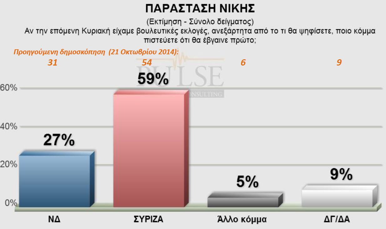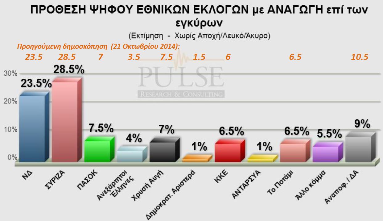 Προβάδισμα 5% στον ΣΥΡΙΖΑ έναντι της ΝΔ καταγράφεται στη δημοσκόπηση της εταιρείας Pulse για τo Action 24.