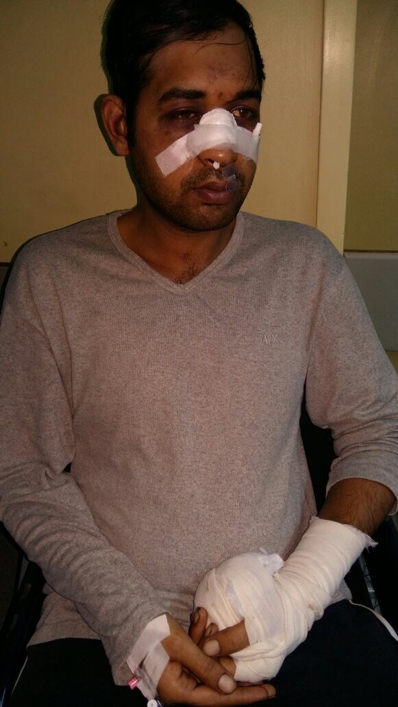 Στη συνέχεια παραπέμφθηκε και νοσηλεύεται στο νοσοκομείο Αγία Όλγα με τραύματα στο πρόσωπο, με σπασμένη τη μύτη και γδαρμένα τα χέρια. Ο ίδιος γνωρίζει λίγα ελληνικά και δεν αντιλήφθηκε τι του φώναζαν όταν τον χτυπούσαν”.