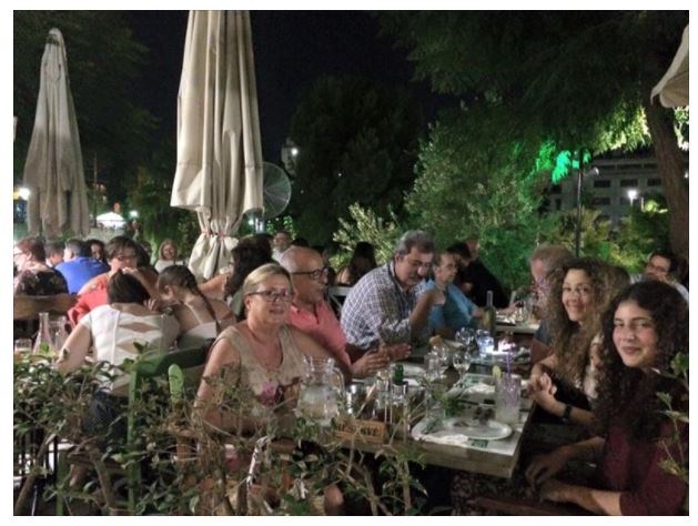 Εγώ τώρα είμαι σε μια ταβέρνα σε μια πλατεία στον Πειραιά με πολύ κόσμο!