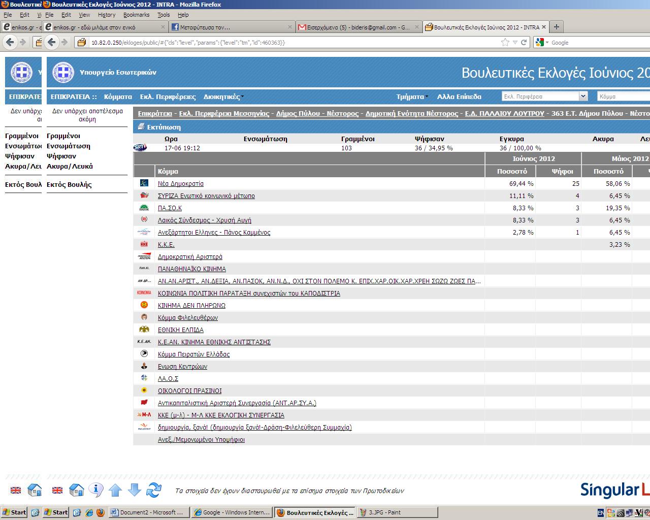 Δείτε τα επίσημα αποτελέσματα και από άλλο εκλογικό τμήμα που μετέδωσε το υπουργείο Εσωτερικών.