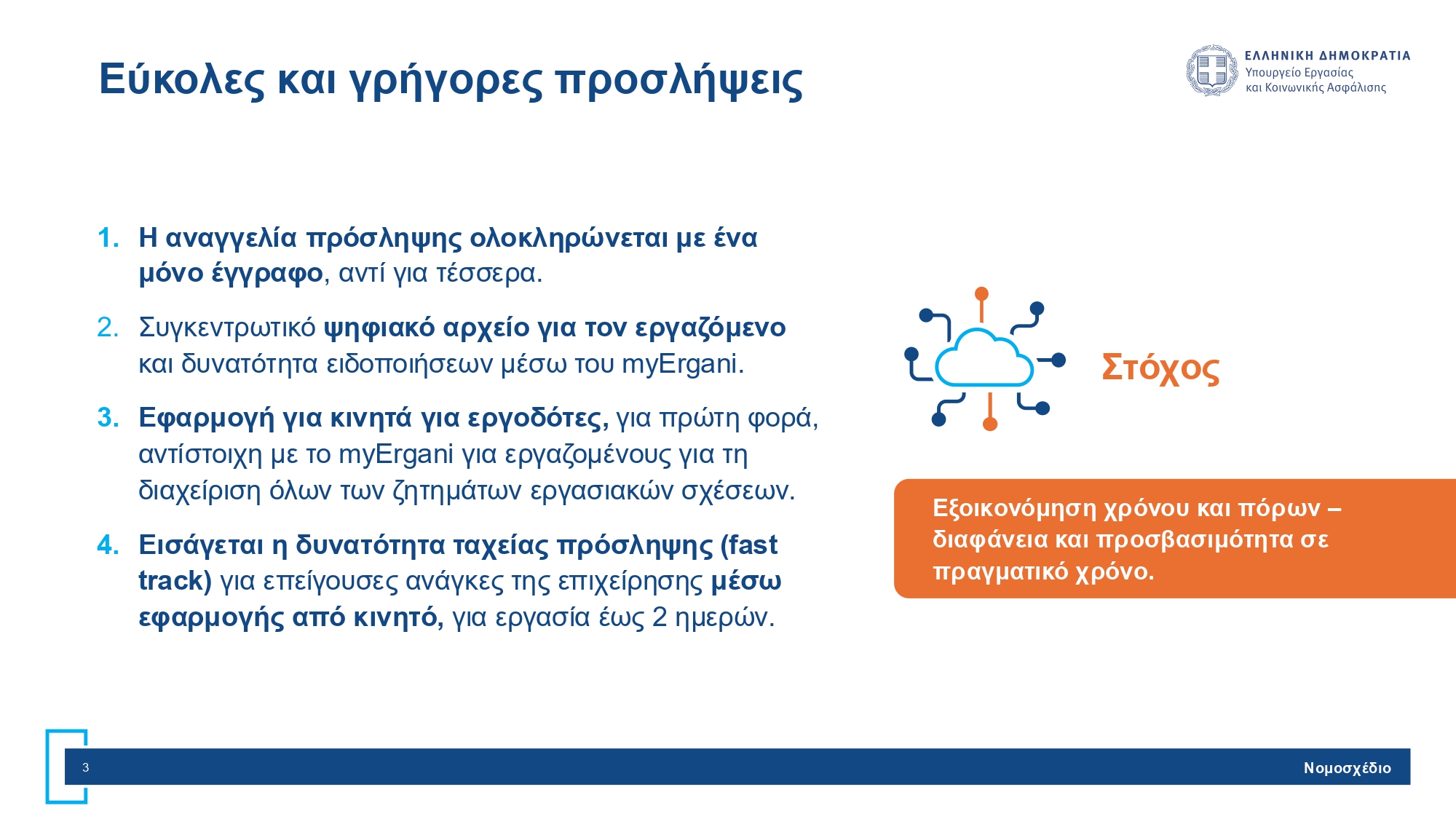 -Fast track προσλήψεις ακόμη και μέσω του κινητού. Aπό τέσσερα έγγραφα που χρειαζόταν για μια πρόσληψη, θα χρειάζεται πλέον μόνο ένα.