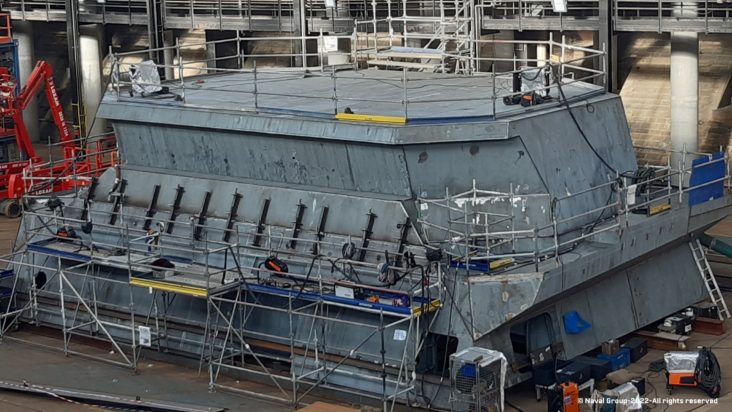 Φωτογραφίες με τις τελευταίες εξελίξεις από τη ναυπήγηση της πρώτης ελληνικής φρεγάτας Belharra – FDI HN, που βρίσκεται σε εξέλιξη στο ναυπηγείο της Λοριάν στη Γαλλία.