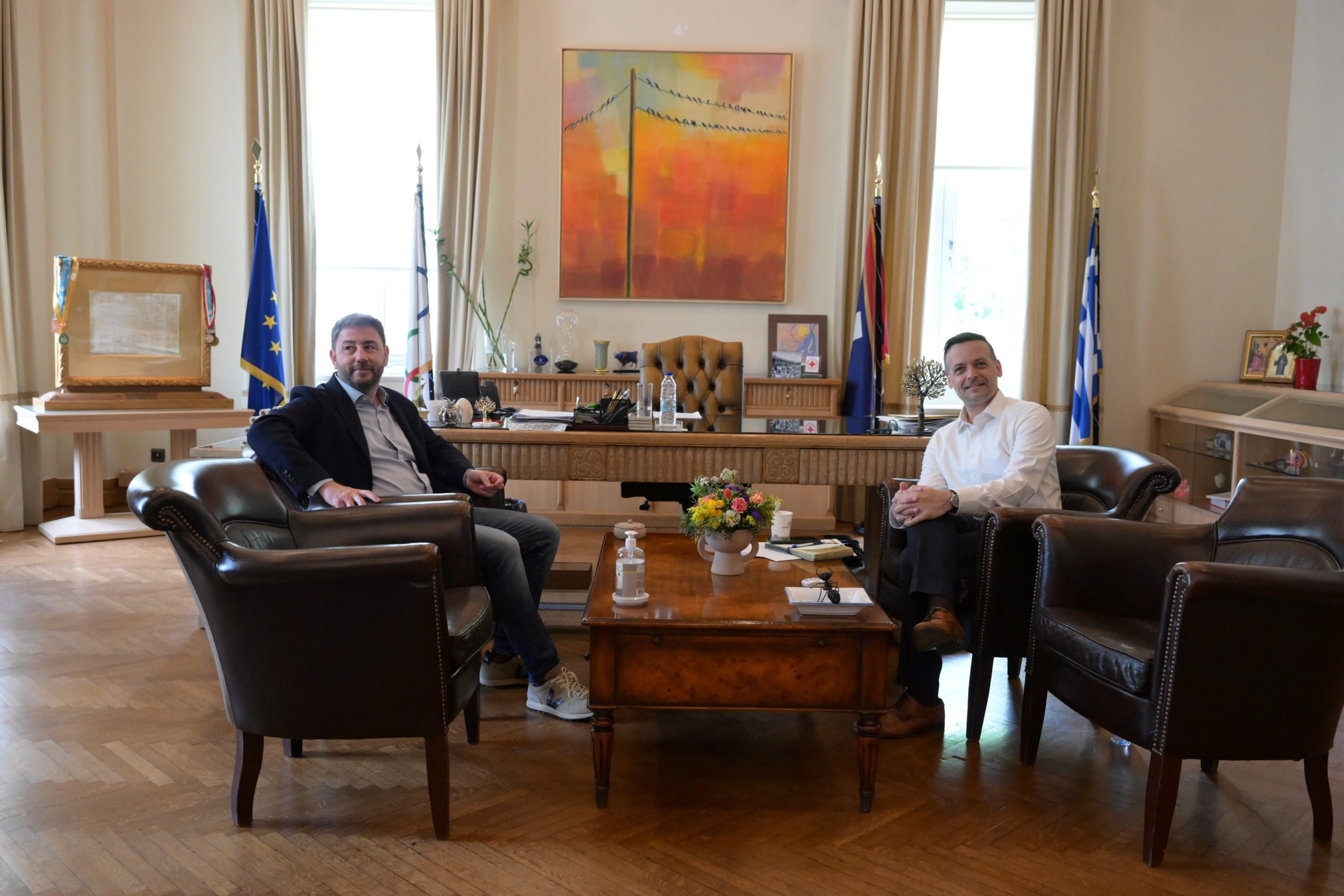 Τον πρόεδρο του ΠΑΣΟΚ-ΚΙΝΑΛ υποδέχτηκε ο Δήμαρχος Αθηναίων, Χάρης Δούκας.