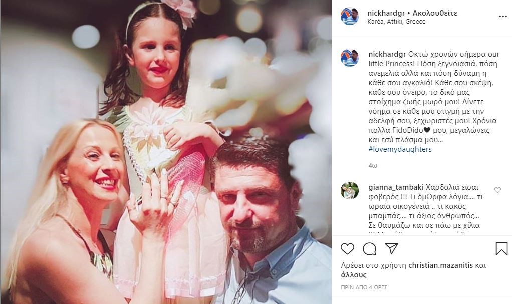 Ο υφυπουργός Πολιτικής Προστασίας και Διαχείρισης Κρίσεων δημοσίευσε μία φωτογραφία στην οποία ποζάρει χαμογελαστός μαζί με τη σύζυγο και την κόρη τους και έγραψε: “Οκτώ χρονών σήμερα our little Princess! Πόση ξεγνοιασιά, πόση ανεμελιά αλλά και πόση δύναμη η κάθε σου αγκαλιά! Κάθε σου σκέψη, κάθε σου όνειρο, το δικό μας στοίχημα ζωής μωρό μου! Δίνετε νόημα σε κάθε μου στιγμή με την αδελφή σου, ξεχωριστές μου! Χρόνια πολλά FidoDido μου, μεγαλώνεις και εσύ πλάσμα μου”.