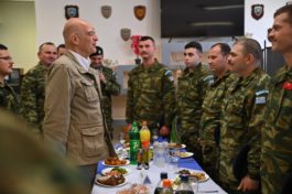 «Εκ μέρους της κυβέρνησης της χώρας, αλλά νομίζω και του συνόλου της ελληνικής κοινωνίας, διατυπώνω την περηφάνια μας για το έργο που επιτελείται εδώ και τη βαθιά ευγνωμοσύνη μας για όσους υπερασπίζονται τα σύνορα της πατρίδας μας» τόνισε ο υπουργός Εθνικής ‘Αμυνας.
