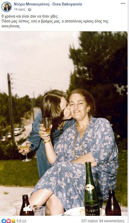 Με μία τρυφερή φωτογραφία, η Ντόρα Μπακογιάννη μοιράστηκε τη θλίψη της για τη συμπλήρωση οκτώ ετών από τον θάνατο της μητέρας της, με τους διαδικτυακούς της φίλους.