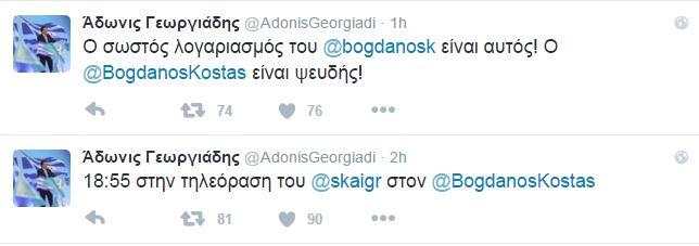 Παρότι είναι δεινός χρήστης του Twitter, ο Άδωνις Γεωργιάδης την… πάτησε. Ο βουλευτής της ΝΔ ήταν καλεσμένος στην εκπομπή του Κωνσταντίνου Μπογδάνου στον ΣΚΑΪ και θέλησε να προαναγγείλλει την τηλεοπτική του εμφάνιση μέσω Twitter.