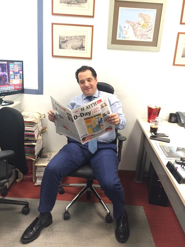 Γιατί; Ο φωτογραφικός φακός του δημοσιογράφου έπιασε τον βουλευτή της ΝΔ να ενημερώνεται, διαβάζοντας το σημερινό φύλλο της «Αυγής».