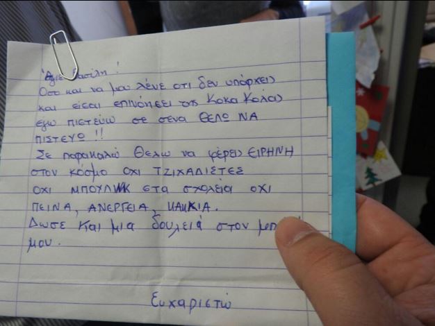 «Στα Κεντρικά των ΕΛΤΑ διαβάζοντας τις κάρτες που στέλνουν τα παιδιά για τον Άγιο Βασίλη. Μεγάλη συγκίνηση»