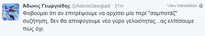 «Φοβούμαι ότι αν επιτρέψουμε να αρχίσει μία περί “σαμποτάζ” συζήτηση, δεν θα αποφύγουμε νέο γύρο γελοιότητας… ας ελπίσουμε πώς όχι» έγραψε ο κ. Γεωργιάδης.