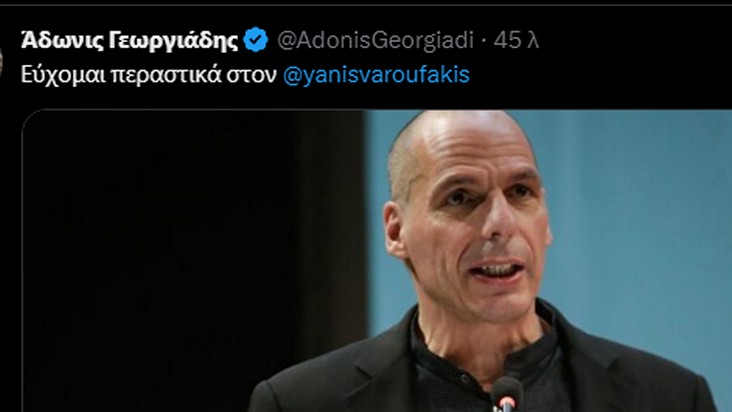 Λίγη ώρα μετά τον ξυλοδαρμό του Γενικού Γραμματέα του ΜεΡα 25 Γιάνη Βαρουφάκη, ο υπουργός ανάπτυξης Άδωνις Γεωργιάδης έστειλε μέσω Social Media τις ευχές του για ταχεία ανάρρωση.