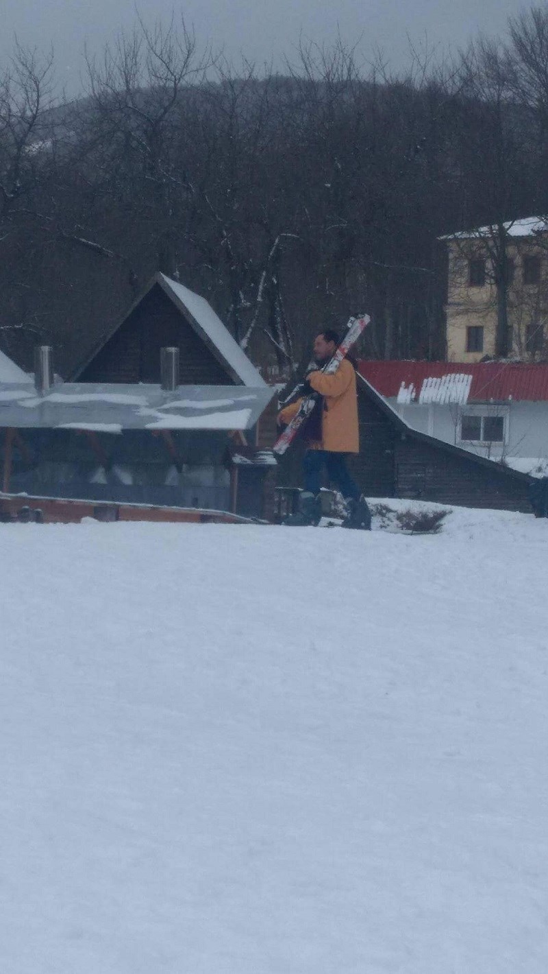 Ο αντιπρόεδρος της ΝΔ, ντυμένος κατάλληλα με πέδιλα και ισοθερμικά ρούχα επέδειξε τις ικανότητες του στο σκι ζητώντας ενίοτε και την βοήθεια των εκπαιδευτών.