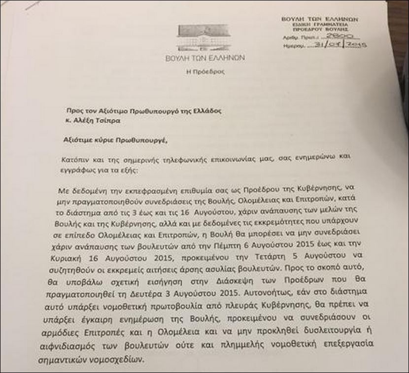 Διαβάστε αναλυτικά την επιστολή της προέδρου της βουλής