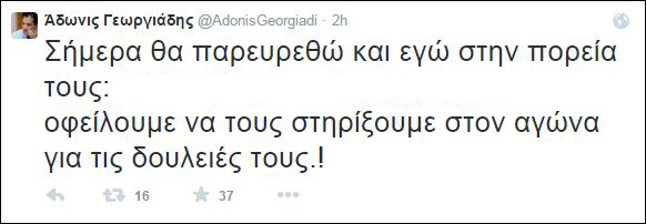 «Σήμερα θα παρευρεθώ και εγώ στην πορεία τους… Οφείλουμε να τους στηρίξουμε στον αγώνα για τις δουλειές τους».