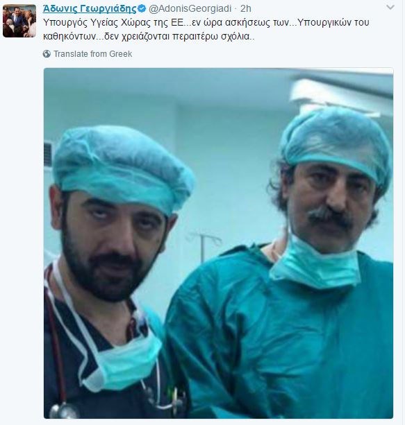 “Υπουργός Υγείας Χώρας της ΕΕ…εν ώρα ασκήσεως των…Υπουργικών του καθηκόντων…δεν χρειάζονται περαιτέρω σχόλια” έγραψε ο κ. Γεωργιάδης.