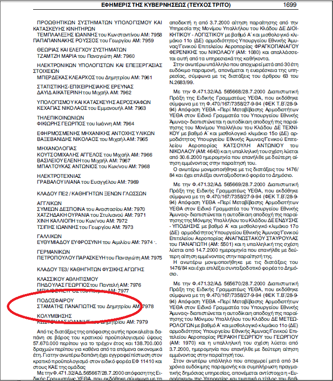 Οι προσπάθειές της δικαιώθηκαν και ο στόχος του αδελφού της επετεύχθη. Η σχολή Ικάρων προκηρύσσει διαγωνισμό για διδακτικό προσωπικό, η προκήρυξη εγκρίνεται από το Γ.Ε.Α. και το υπουργείο Εθνικής Άμυνας, ο Παναγιώτης Σταμάτης καταθέτει τα χαρτιά του και γίνεται καθηγητής φυσικής αγωγής στη σχολή. Και μάλιστα, συγκέντρωσε την υψηλότερη βαθμολογία από όλους τους διαγωνιζόμενους. Τον Αύγουστο του 2000 προσλαμβάνεται ως δόκιμος υπάλληλος για την πλήρωση μια εκ των κενών θέσεων στον κλάδο φυσικής αγωγής (τεχνολογικής εκπαίδευσης), με ειδικότητα στο ποδόσφαιρο (ΦΕΚ Γ 240 / 21-08-2000). Τέσσερα χρόνια αργότερα, κι ενώ η αδελφή του ασχολούνταν πλέον με τις ετοιμασίες του γάμου της με τον Άκη Τσοχατζόπουλο στο Παρίσι, έρχεται το χαρμόσυνο νέο. Δύο μήνες πριν τις εκλογές του Μαρτίου του 2004, εκδίδεται απόφαση για τη μονιμοποίησή του στη σχολή Ικάρων (ΦΕΚ Γ 16-23-01-2004), σε θέση Ειδικού και Εργαστηριακού Διδακτικού Προσωπικού και λίγο μετά με νέα απόφαση όταν κατανέμονται οι θέσεις των μόνιμων πλέον υπαλλήλων εντάσσεται στον τομέα Ηγετικής-Διοικητικής, Ανθρωπιστικών Επιστημών και Φυσιολογίας. (ΦΕΚ Γ 52/18-02-2004). Αν και δεν είναι πολλά πράγματα γνωστά για τη ζωή του κουνιάδου του Άκη Τσοχατζόπουλου, αυτό που είχε κάνει εντύπωση σε συναδέλφους του στη σχολή Ικάρων ήταν η βάφτιση του παιδιού του σε εκκλησία στο Καβούρι, που συνήθως επιλέγουν οι πλούσιες οικογένειες της Αθήνας. Μάλιστα, ένα υψηλόβαθμο στέλεχος της σχολής που ήταν καλεσμένος, είχε μείνει άναυδος όταν είδε τον υφιστάμενό του γυμναστή να καταφθάνει στην εκκλησία με ένα υπερπολυτελές αυτοκίνητο-λιμουζίνα μάρκας μερσεντές…