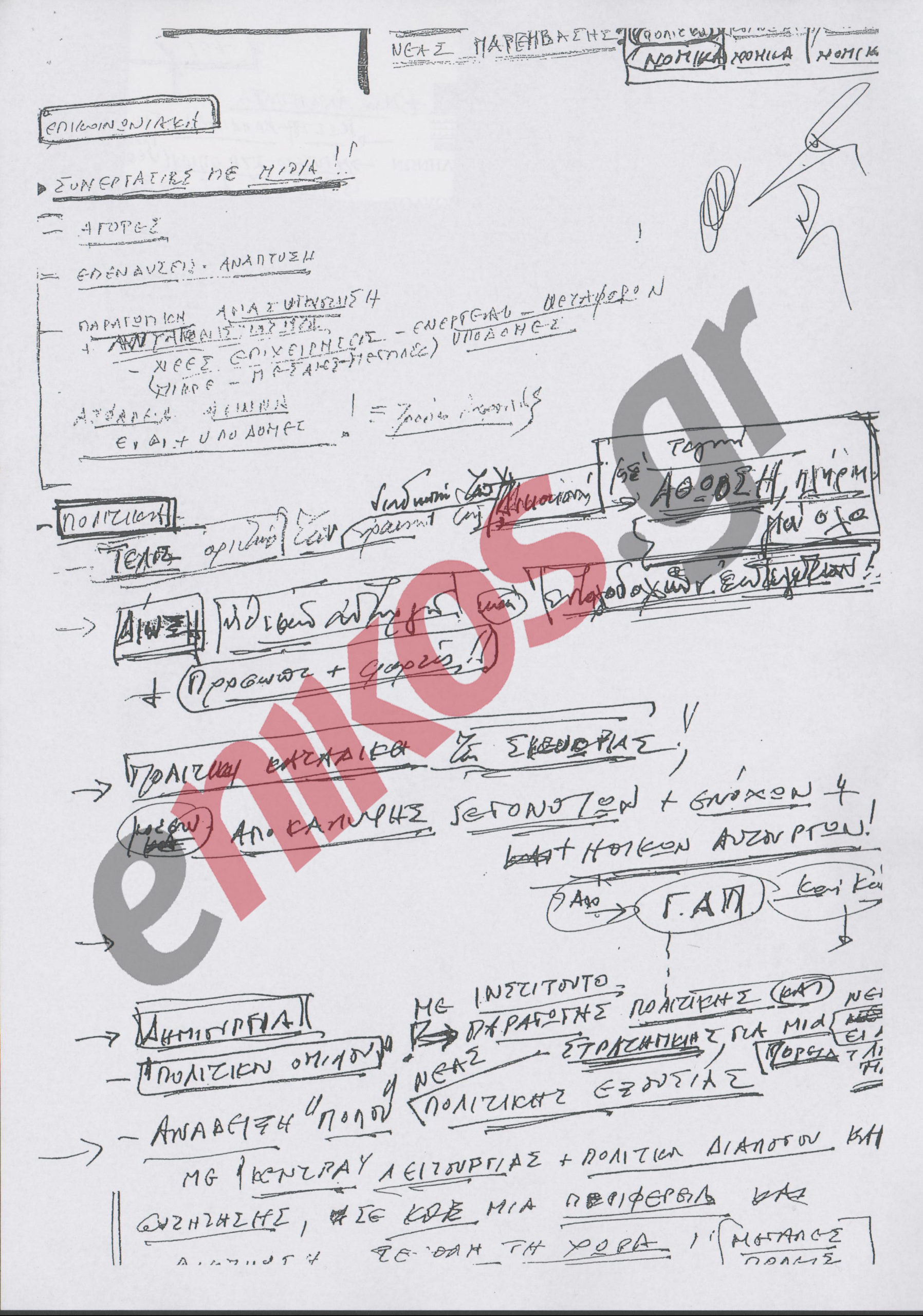 Ο Άκης Τσοχατζόπουλος αναφέρεται για ακόμα μία φορά στην επικοινωνιακή του τακτική, όμως το ενδιαφέρον στο συγκεκριμένο έγγραφο εντοπίζεται σε όσα αναφέρεται για το τι πρόκειται να πράξει σε πολιτικό επίπεδο.