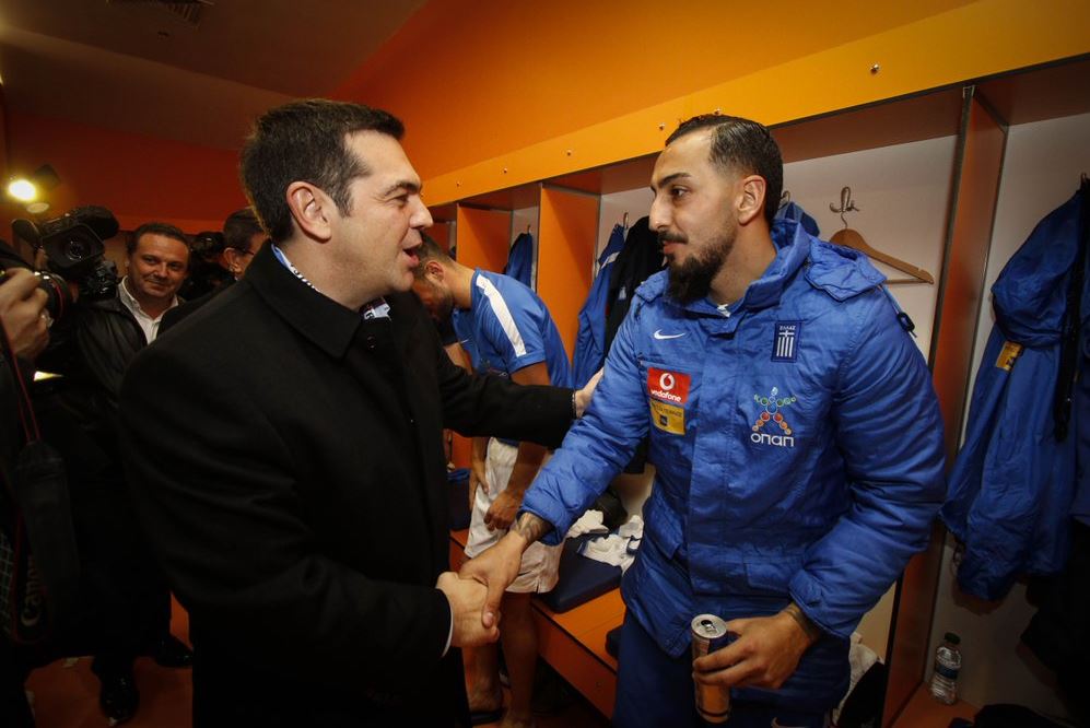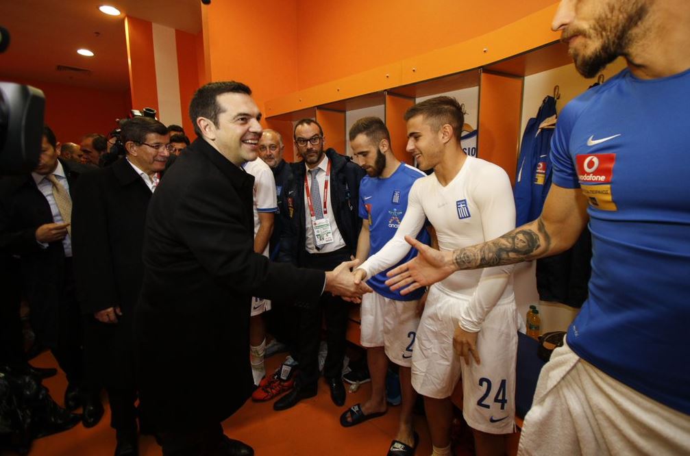 Μετά το τέλος του φιλικού αγώνα της Τουρκίας με την Ελλάδα, ο Πρωθυπουργός Αλέξης Τσίπρας, βρέθηκε στα αποδυτήρια της Εθνικής ομάδας για να χαιρετήσει τους διεθνείς.