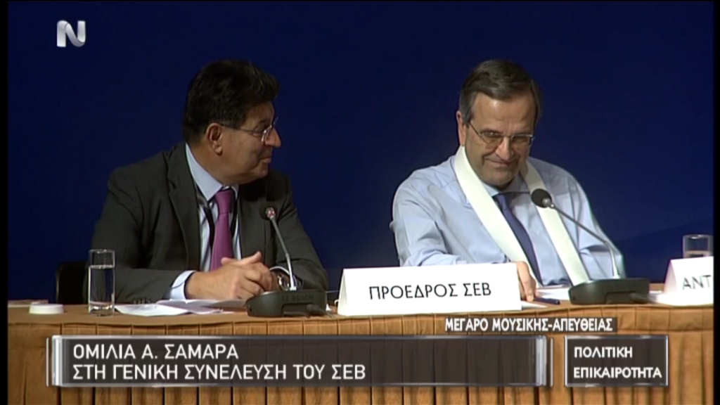 Στο συνέδριο του ΣΕΒ μιλά αυτή την ώρα ο πρόεδρος της Νέας Δημοκρατίας, Αντώνης Σαμαράς.