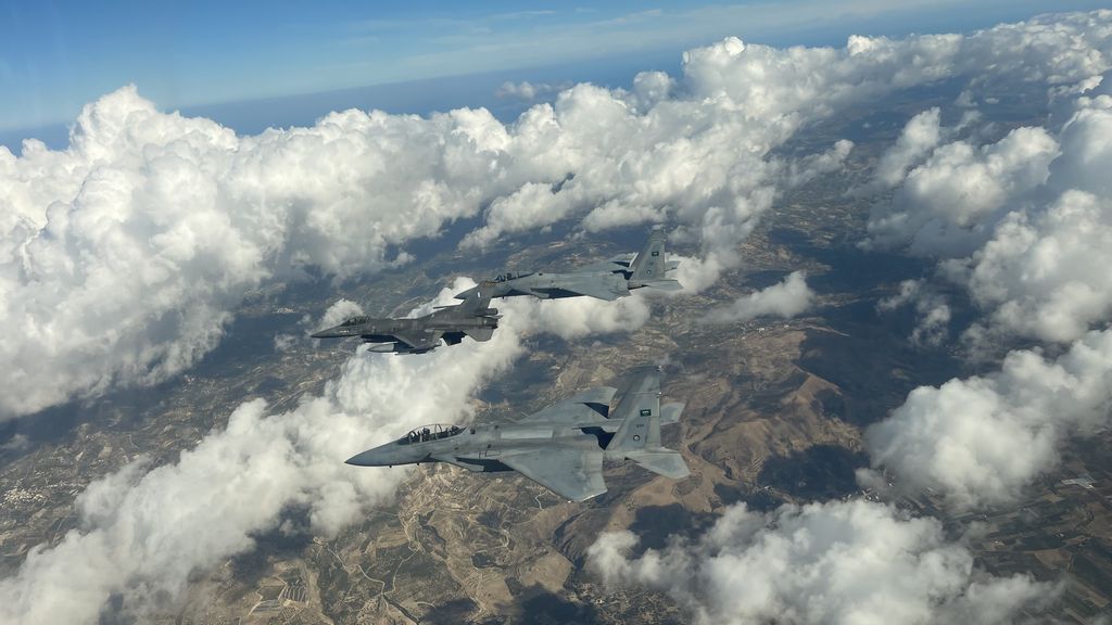 Το πρώτο γεράκι της Πολεμικής Αεροπορίας πέταξε με F-16 και ενεπλάκη σε εικονική αερομαχία με 2 F-15 της Σαουδικής Αραβίας, που είχαν απογειωθεί από την Σούδα.