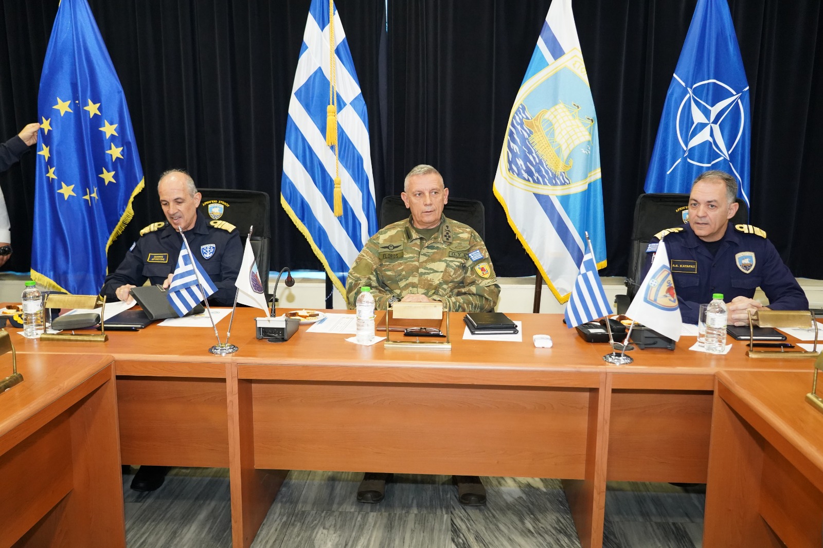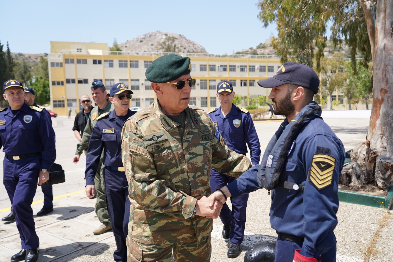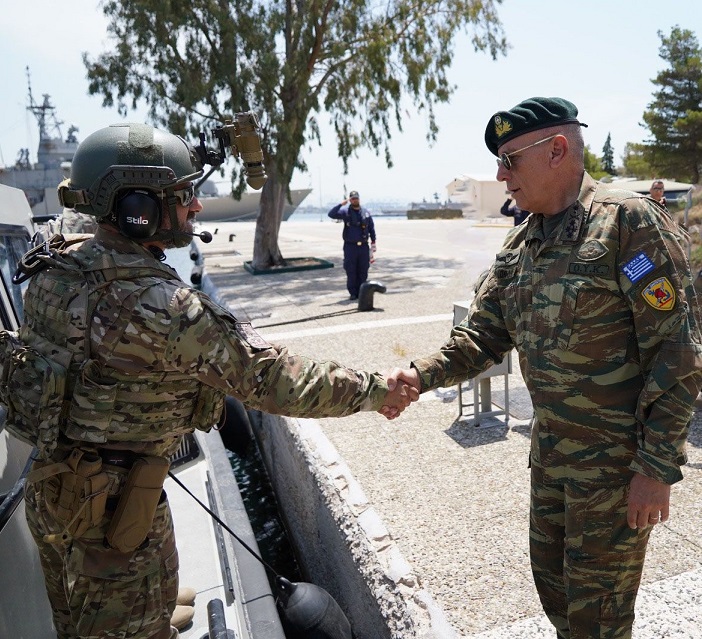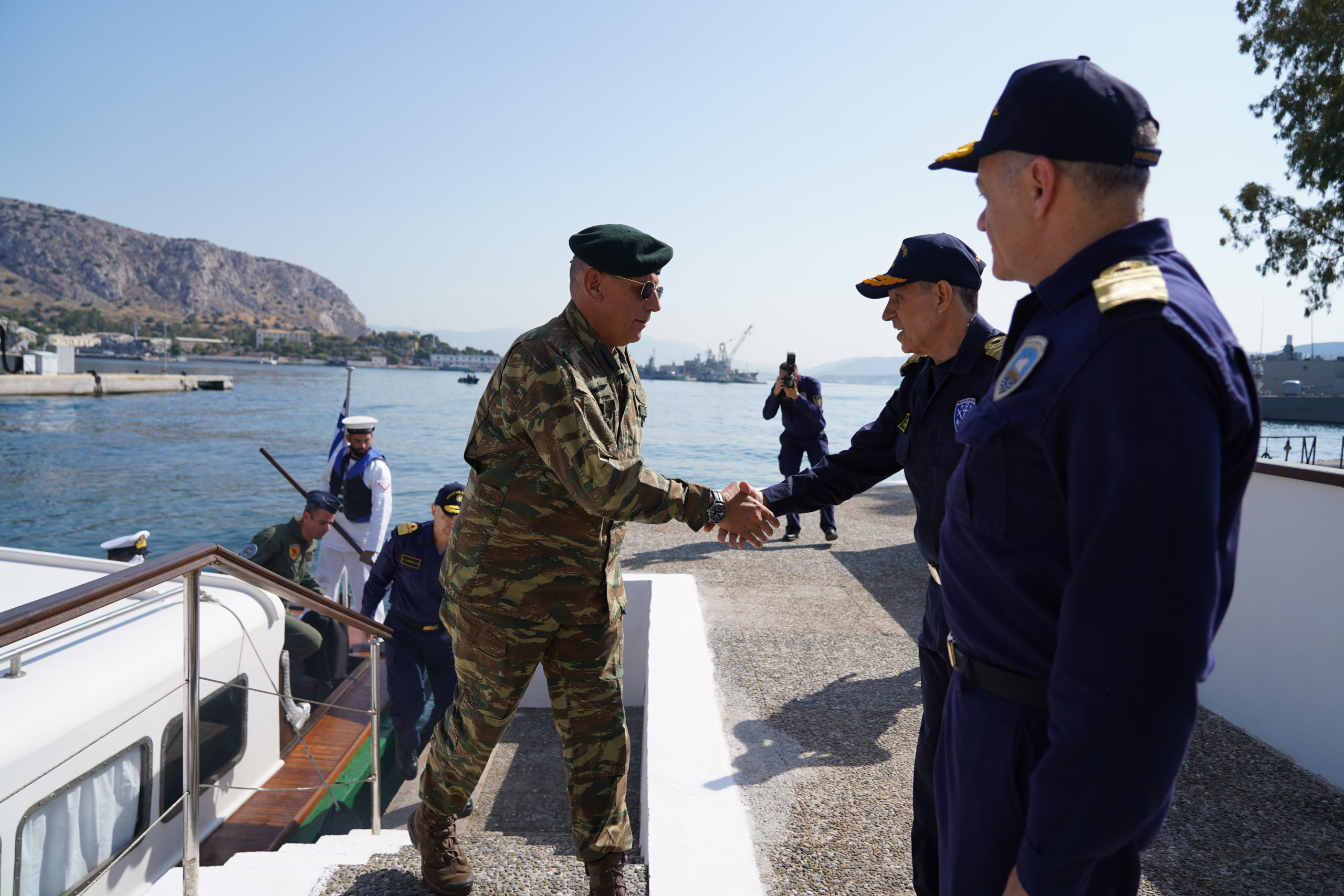 Τον Αρχηγό ΓΕΕΘΑ Στρατηγό Κωνσταντίνο Φλώρο υποδέχθηκαν στον Ναύσταθμο Σαλαμίνας ο Αρχηγός ΓΕΝ Αντιναύαρχος Ιωάννης Δρυμούσης ΠΝ και ο Αρχηγός Στόλου Αντιναύαρχος Δημήτριος – Ελευθέριος Κατάρας ΠΝ.