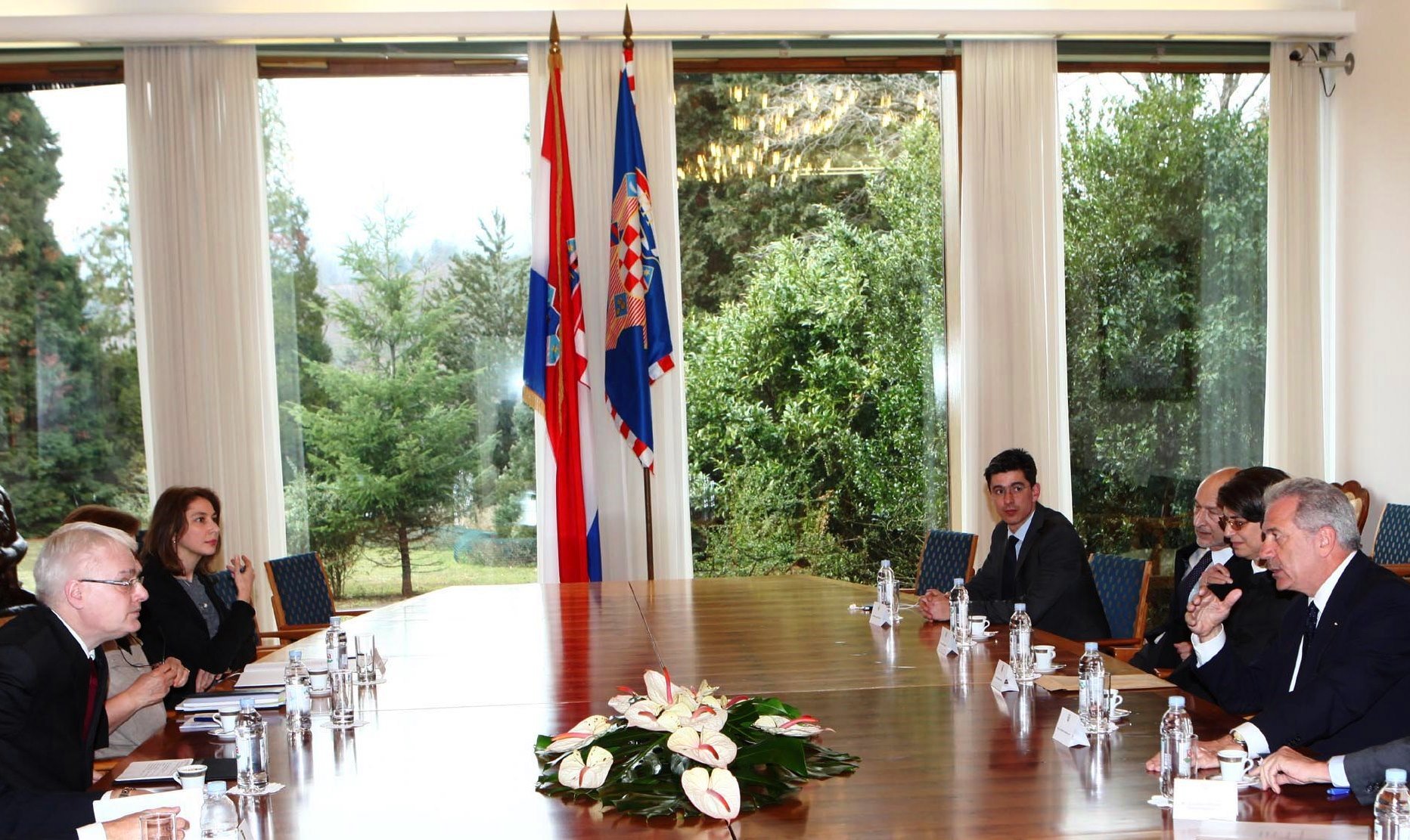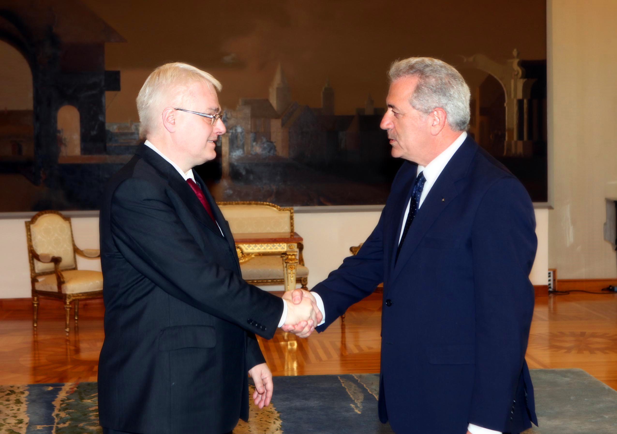 Αμέσως μετά την άφιξή του στο αεροδρόμιο του Ζάγκρεμπ, ο κ. Αβραμόπουλος έγινε δεκτός από τον Πρόεδρο της Δημοκρατίας της Κροατίας Dr. Ivo Josipovic, με τον οποίον υπήρξε μια μακρά και ειλικρινής ανταλλαγή απόψεων, σε εξαιρετικά θερμή ατμόσφαιρα, για ζητήματα σημαντικού πολιτικού ενδιαφέροντος για την ευρύτερη περιοχή.