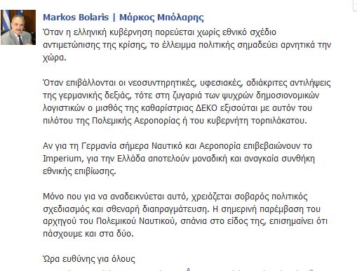 «Όταν η ελληνική κυβέρνηση πορεύεται χωρίς εθνικό σχέδιο αντιμετώπισης της κρίσης, το έλλειμμα πολιτικής σημαδεύει αρνητικά την χώρα.