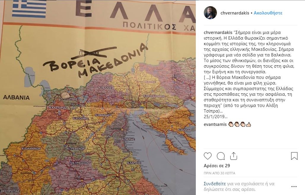 Με έναν χάρτη που η ονομασία «Βόρεια Μακεδονία» έχει αντικαταστήσει την πΓΔΜ χαιρέτισε την κύρωση της Συμφωνίας των Πρεσπών ο υπουργός Επικρατείας Χριστοφόρος Βερναρδάκης.
