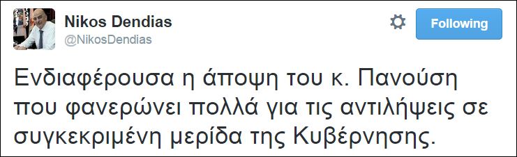 Το άρθρο – φωτιά του υπουργού Προστασίας του Πολίτη, Γιάννη Πανούση σχολίασε ο βουλευτής της Νέας Δημοκρατίας, Νίκος Δένδιας στον προσωπικό του λογαριασμό στο twitter.