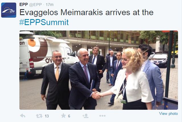 Ο πρόεδρος της Νέας Δημοκρατίας, Ευάγγελος Μεϊμαράκης, καταφθάνει στη συνεδρίαση του Ευρωπαϊκού Λαϊκού Κόμματος.