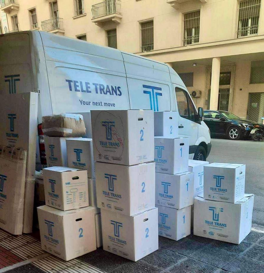 Σε τρίτη φωτογραφία φαίνεται ένα φορτηγό να φορτώνει πράγματα και μεταξύ άλλων υπάρχει ένα μεγάλο δέμα που μοιάζει με πακεταρισμένο πίνακα.