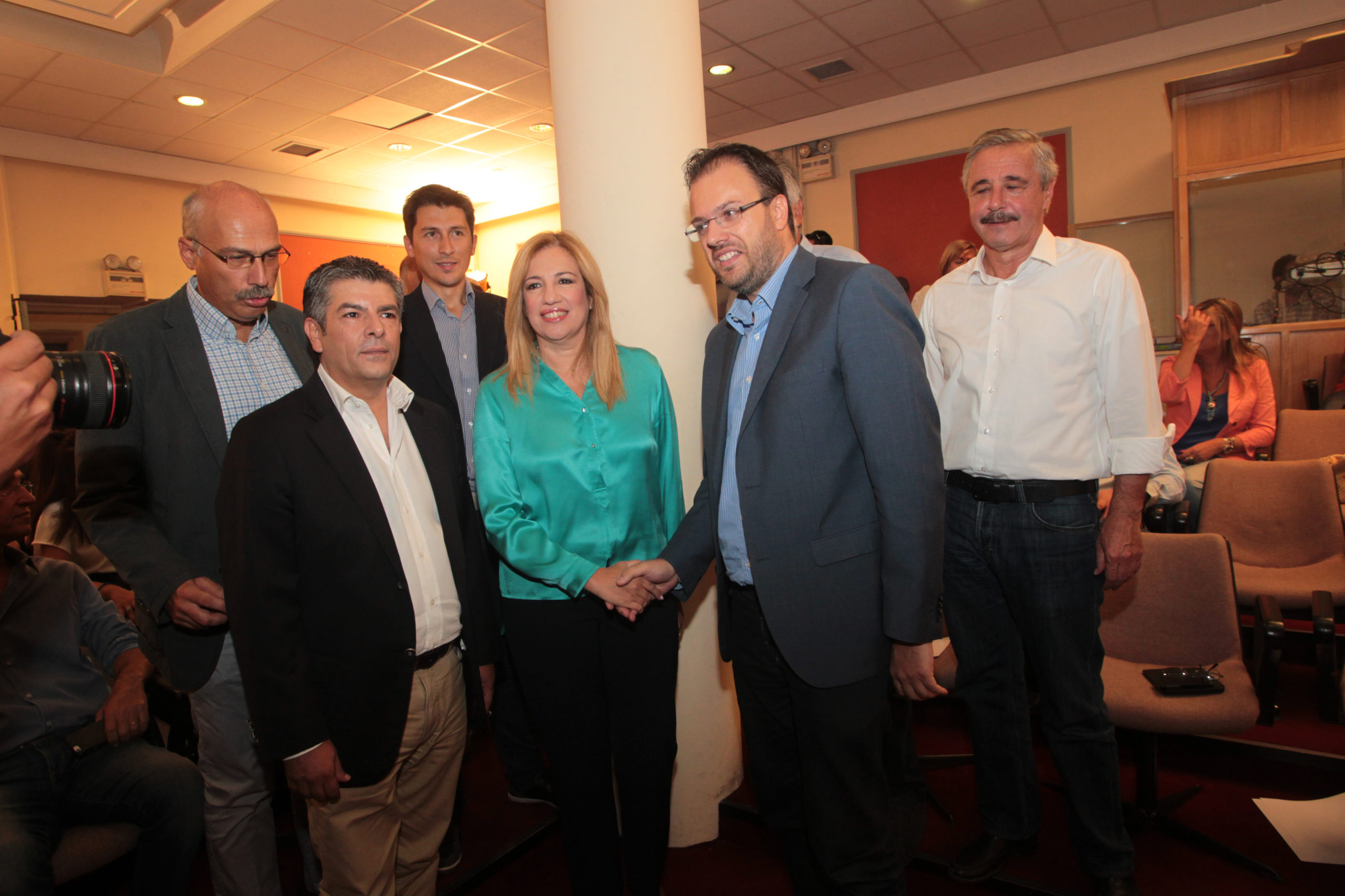 Όπως βλέπετε και στις φωτογραφίες, η Φώφη Γεννηματά είχε θερμή χειραψία με τον Θανάση Θεοχαρόπουλο λίγο πριν από την κοινή συνέντευξη Τύπου, πλαισιωμένοι από στελέχη των δύο κομμάτων.