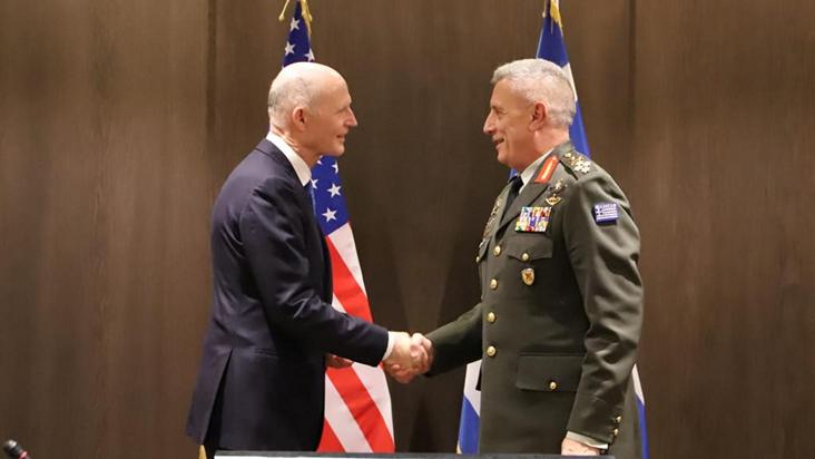 Ιδιαίτερη μνεία έκανε στη στρατηγική σχέση και στην αμυντική συνεργασία Ελλάδας και Ηνωμένων Πολιτειών, που εδράζεται στο κοινό όραμα για ειρήνη, σταθερότητα και ασφάλεια, στην βάση των αρχών του Διεθνούς Δικαίου και της διαφύλαξης των ανθρωπίνων δικαιωμάτων, και τόνισε την στρατηγική σημασία και αξία της Σούδας και της Αλεξανδρούπολης στην παροχή σημαντικών διευκολύνσεων στις Ένοπλες Δυνάμεις τόσο των ΗΠΑ όσο και άλλων Συμμάχων και εταίρων μας.
